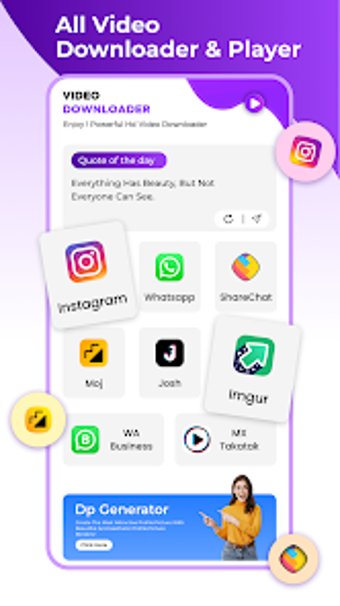 "All Video Downloader & Player" es una aplicación multimedia diseñada para facilitar la descarga y reproducción de videos en dispositivos Android. Permite a los usuarios guardar videos de diversas plataformas con solo unos toques. Entre sus características destacadas se incluye un reproductor multimedia integrado que permite reproducir videos descargados sin salir de la aplicación, así como la opción de guardar estados de WhatsApp directamente en la galería del dispositivo. Además, cuenta con un modo en segundo plano que permite continuar descargando mientras se realizan otras tareas en el teléfono.